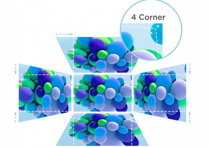 Máy hỗ trợ 2D Keystone Correction cùng với tính năng Corner Fit, giúp hiệu chỉnh hình ảnh chính xác ngay cả khi không đặt máy vuông góc. Người dùng dễ dàng tạo ra khung hình vuông vức, chuyên nghiệp trong mọi tình huống lắp đặt.