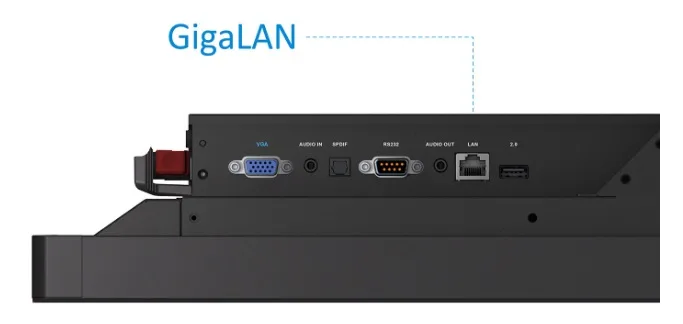 Kết nối: ĐẦU VÀO HDMI: 2.0 x3 (3840×2160 @ 60Hz) RGB / VGA: x1 Âm thanh: x1 (Âm thanh PC trong) CVBS: x1 RS232: x1 OPS: x1 PC Slot (độc quyền) ĐẦU RA HDMI: x1 Âm thanh: x1 (Tai nghe ra) SPDIF: 1 (quang) RS232: x1 Mạng LAN RJ45: x1