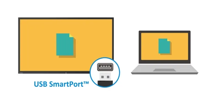 SmartPort ™ chia sẻ cổng USB phía trước cho PC bên trong & bên ngoài.